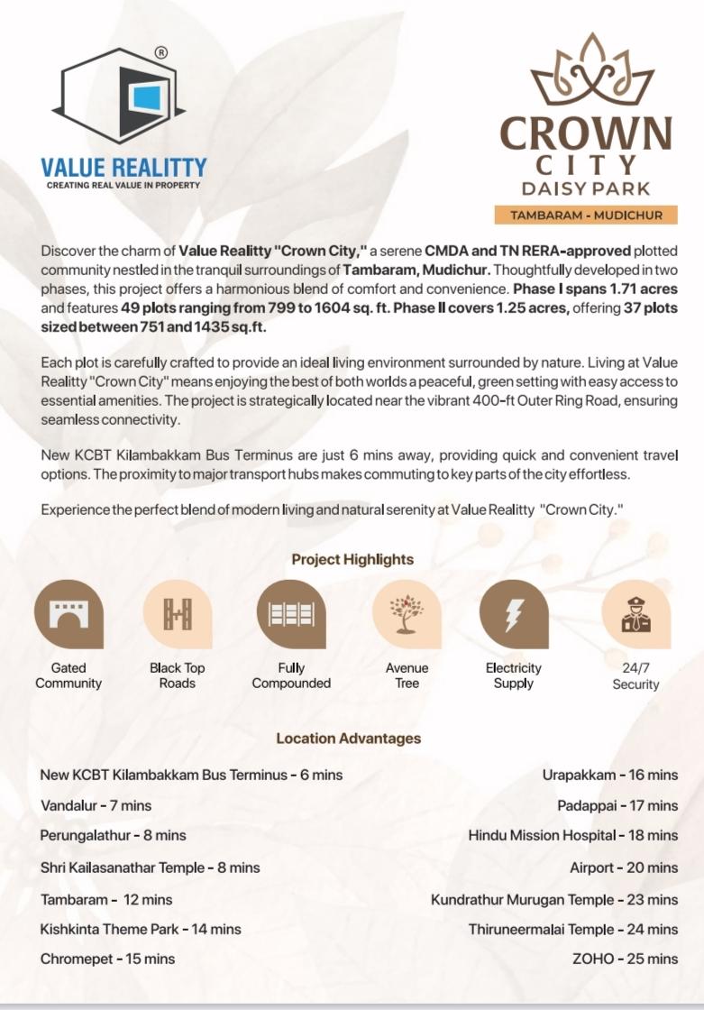 🎊🎊🎊_*CMDA Approved Plots*_, Land Area: 751sqft to 5000sqft Available