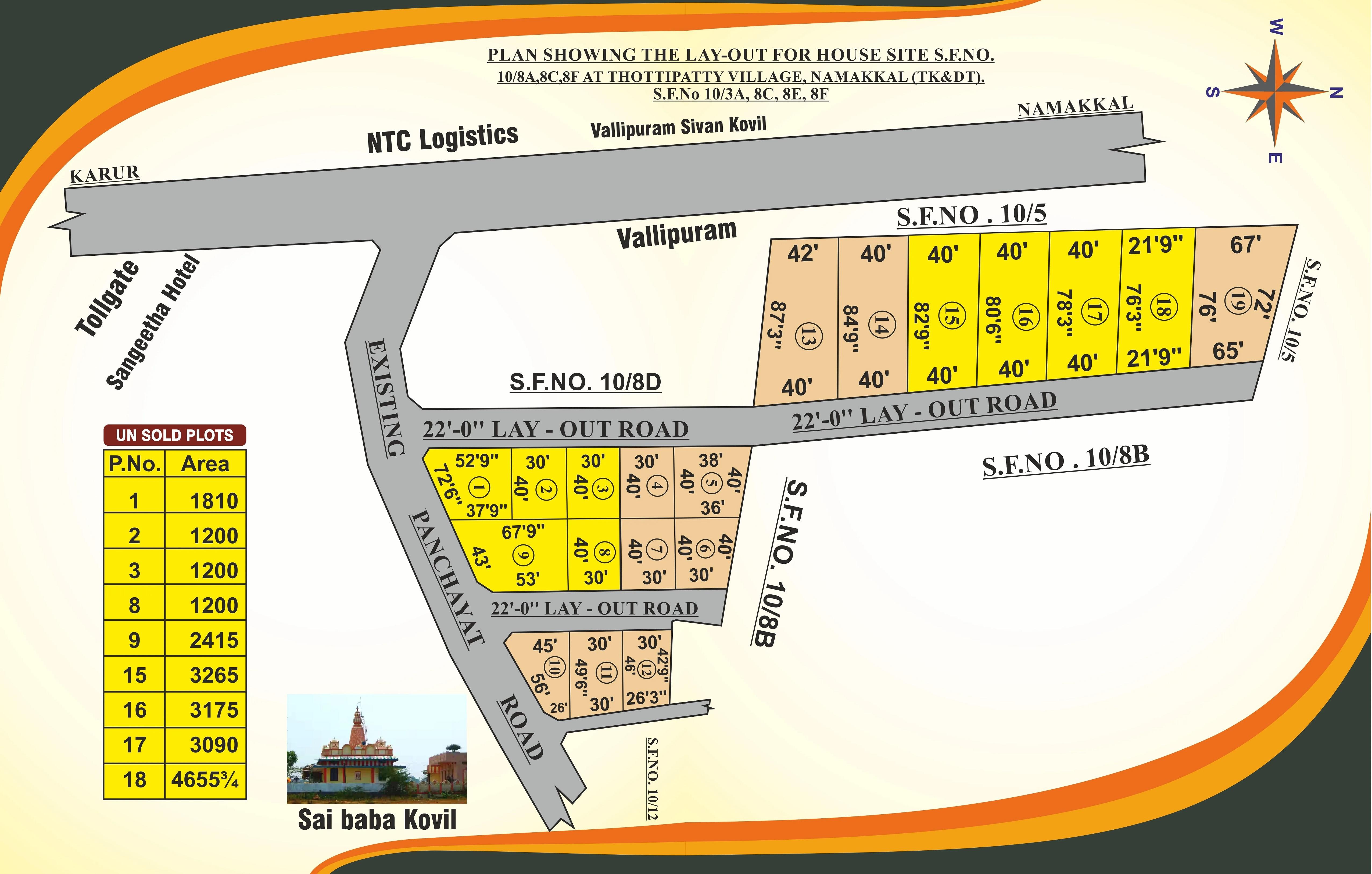 Discover a golden opportunity to own a strategically located plot on the Karur - Namakkal Bypass, near the renowned Shirdi Sai Baba Temple in Thottipatti. This prime location offers excellent connectivity and easy access to essential amenities. Nestled in a peaceful and rapidly developing neighborhood, the plot is ideal for residential development—perfect for building your dream home or making a smart investment for the future.y Pass and Shirdi Sai Baba Temple, Thottipatti.